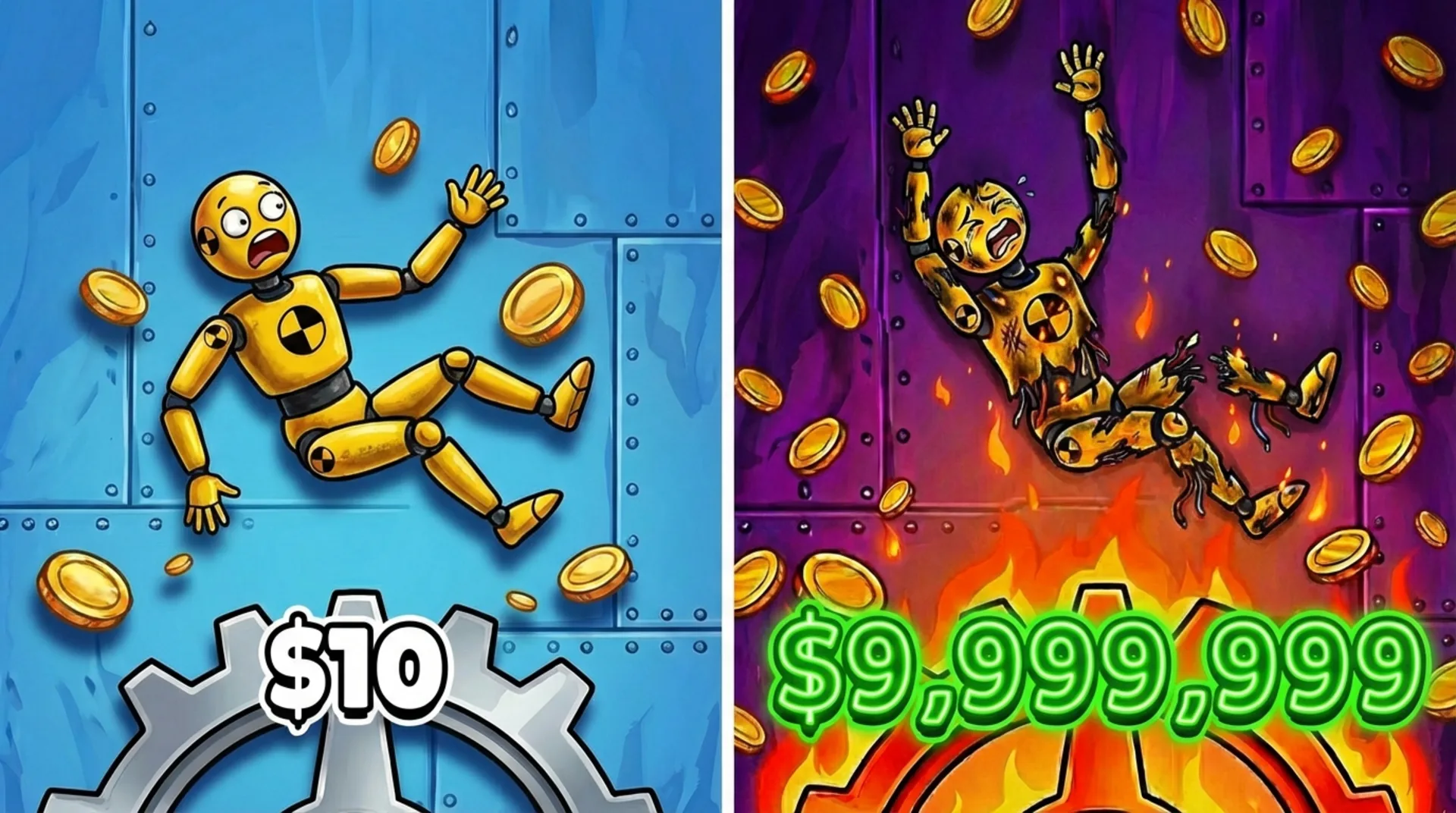 Ready for the gameplay? The core loop is simple but super addictive. Your main objective is to generate wealth by dropping ragdolls into a series of spinning gears. Every single collision earns you cash, which you'll then use to buy powerful upgrades. We designed the physics to feel really weighty and impactful, so every drop just feels right.